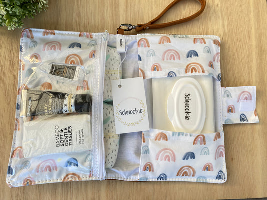 Leather nappy wallet - Watercolour rainbow on tan leather