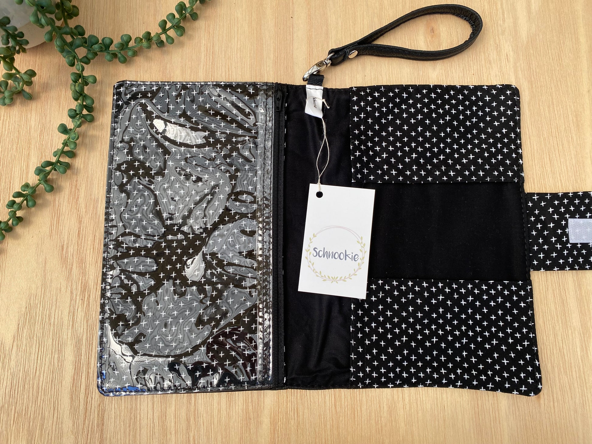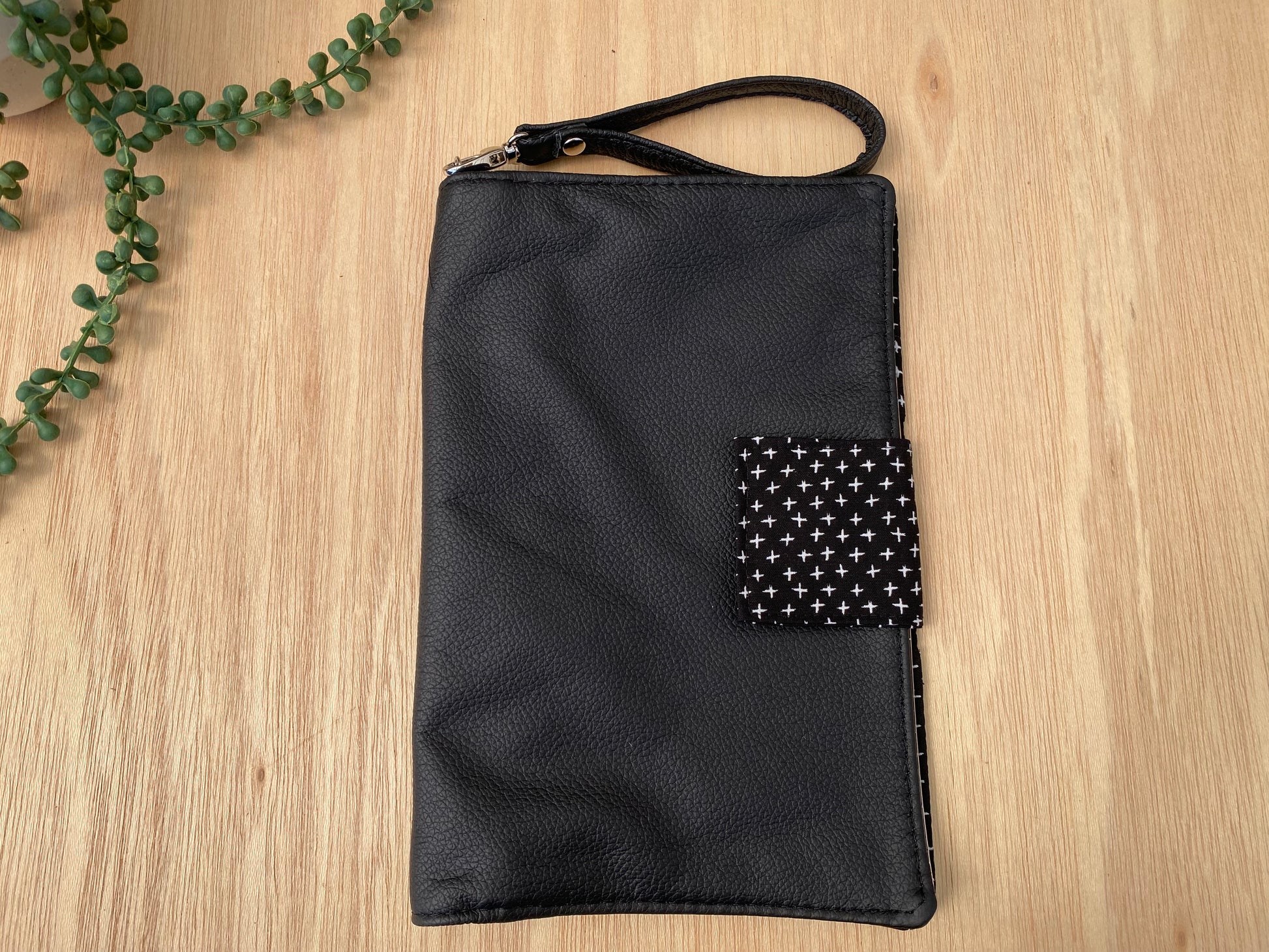 Leather Nappy Wallet - Black cross on black leather