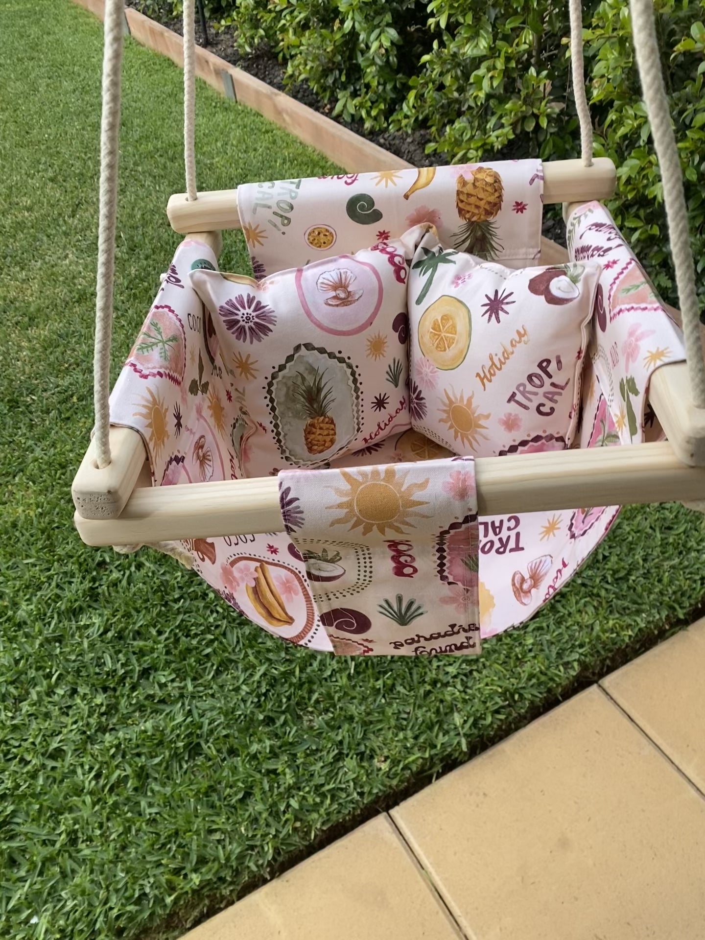 Our gorgeous handmade swing is suitable from approx 6 months to 4 years (up to 25kg).